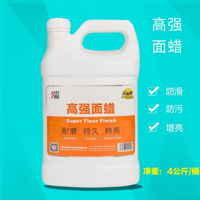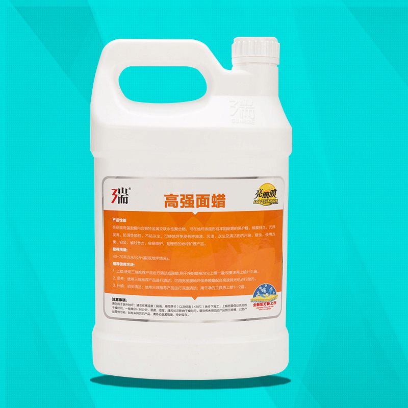 高強面蠟高硬度、高亮度、耐磨性強。特別適用于人流量大于1000人次/天、或者面臨嚴(yán)重污染環(huán)境的地面。